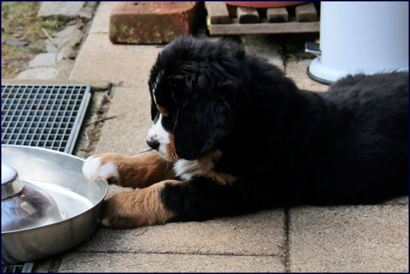 letzte Mal mit Senta und lasse alle in den Garten,